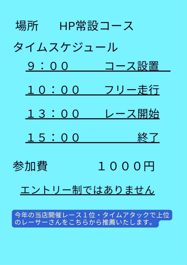 【立体レース】(現在主流のジャンプ台やスロープを使ったレース。誰でも参加可能。)